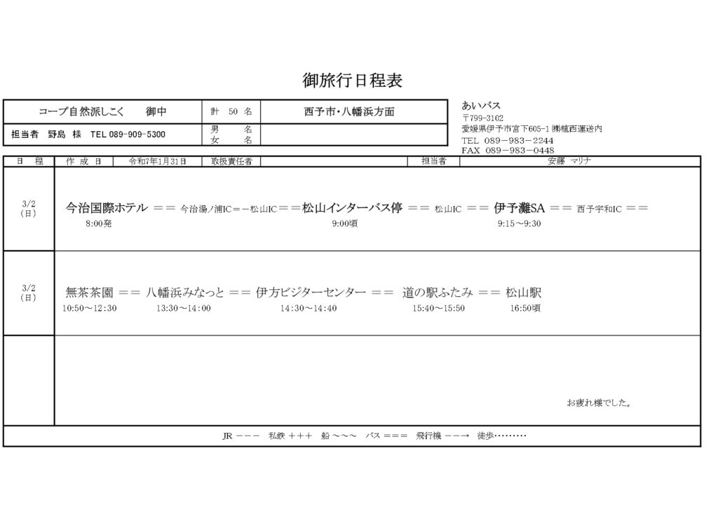 伊方ツアー行程表