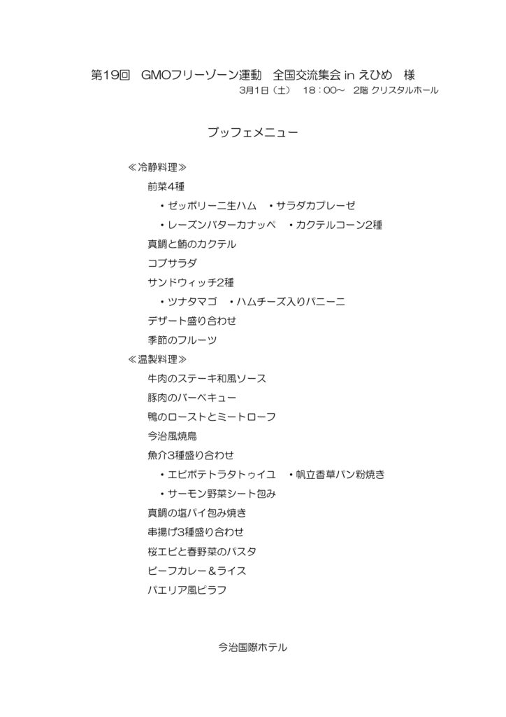 この度はGMOフリーゾーン運動全国交流集会inえひめへご参加いただき誠にありがとうございます。