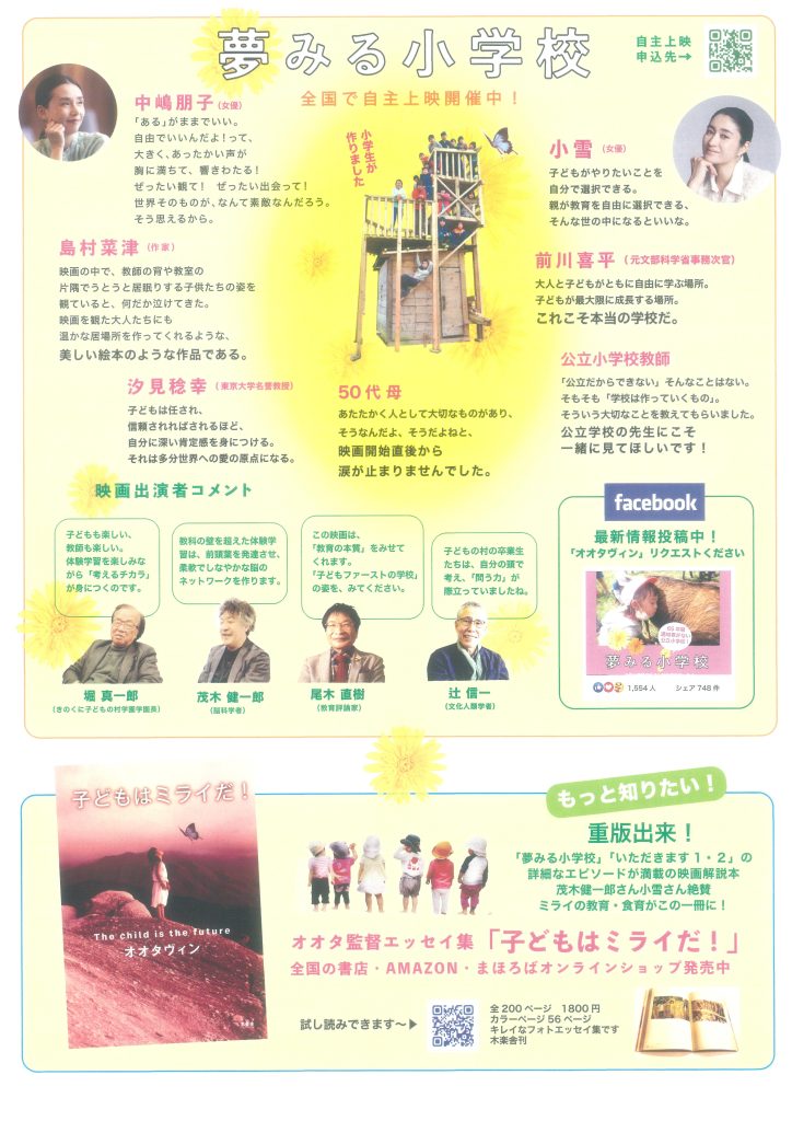 - メール題名には「夢みる小学校」上映会 参加希望とご入力ください。