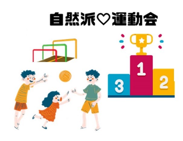 チーム分けは運動会の当⽇、来られた⽅から家族ごとに⾊分けをさせていただきます。⾝体を動かして、景品に⾃然派の商品をもらってかえりましょう♪