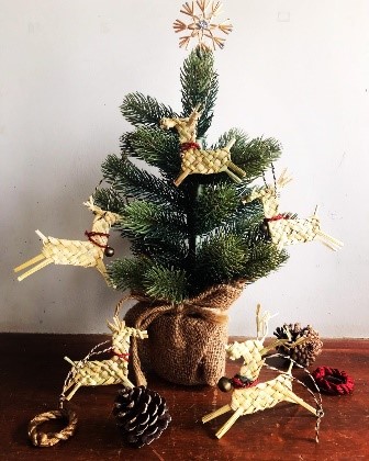 お米の副産物である藁を使ったかわいいトナカイさんのオーナメントを作ります。