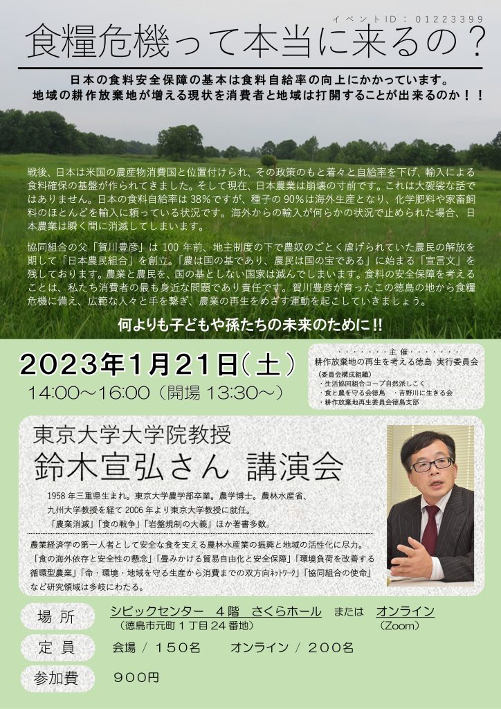 - メール題名には件名に「鈴木宣弘さん講演会」とご入力ください。