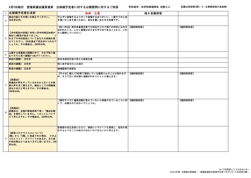 【えひめ】2023年春 主戦場は愛媛県!ー県議会選挙立候補予定者へのアンケート&回答公開ー(南予)