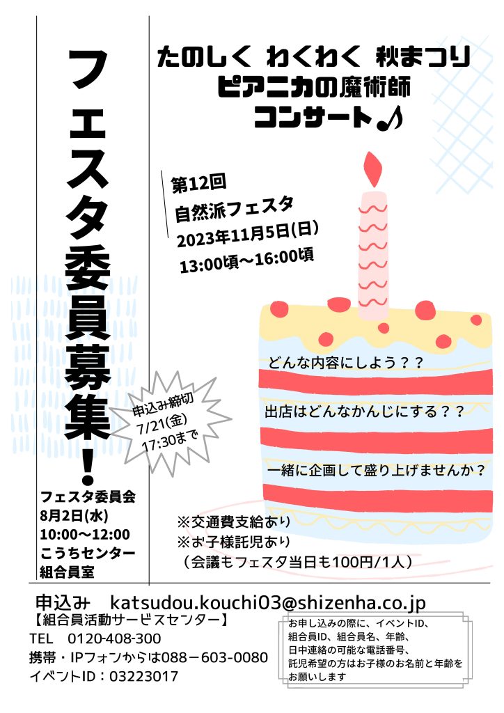 8月2日(水)10:00~12:00 こうちセンター組合員室