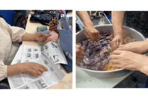 9月の手仕事カフェでは、白いチュニックを草木染めで淡いピンク色に変身させている方もいました。