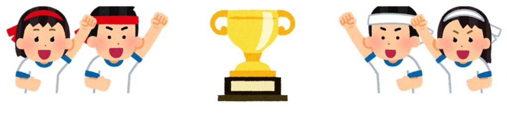 小さいお子さんも参加できる競技や玉投げ、パン食い競争、障害物競走、リレーなど数競技を紅白にわかれて競技します。