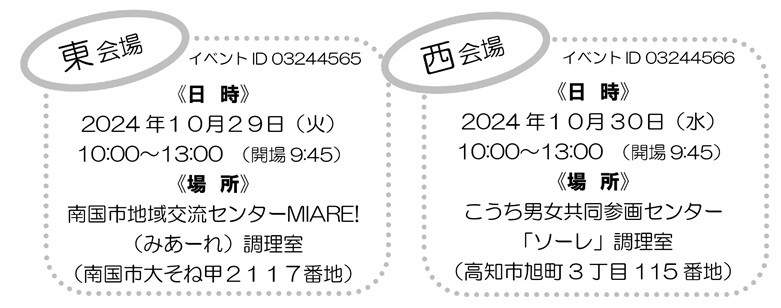- 東会場:南国市地域交流センターMIARE! (みあーれ)調理室