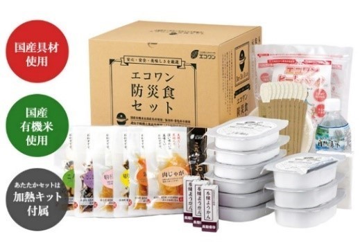 備蓄用の非常食が欲しいけど添加物が心配…」そんな声からエコワン防災食セットが作られました。国産有機のお米、国産具材おかず、素材にこだわったやさしいパン。非常時だからこそ、体調を崩さないためにも、安心安全な食が大切です。