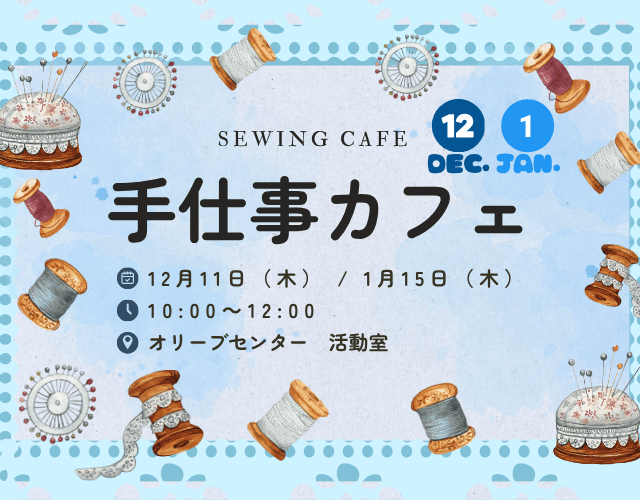 お忙しい日々の合間に、ちょっとひと息。 パッチワークや袋ものをつくったり、編み物や刺し子、ミシン仕事やちくちく手縫い…。 おしゃべりをしながら手を動かし、心もほどけるひとときをご一緒しませんか?