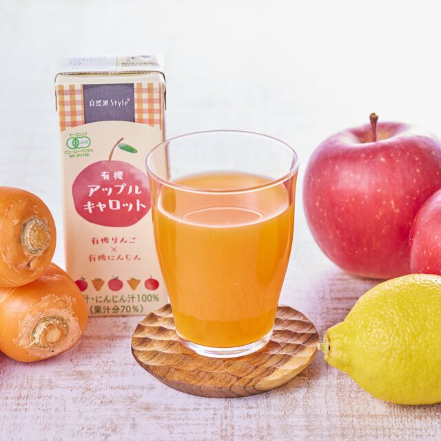 有機栽培のりんごと国産有機にんじんの自然な甘みを活かしたオーガニックジュース。自然な甘み&クセのないすっきりとしたあと味です。砂糖、香料不使用。