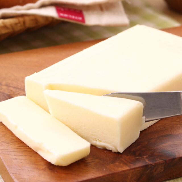 よつ葉乳業の看板商品のひとつ。北海道十勝産の生乳でつくりました。ふわっと溶けて甘い後味です。パンはもちろん、料理にも大活躍!