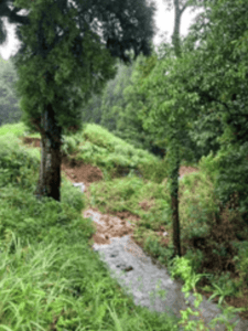 圃場一部の土砂崩れ。露地圃場の浸水。発芽したての芽が流されました。